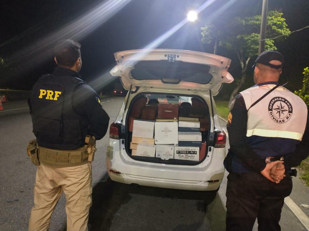A Policia Rodoviária Federal apreendeu no final da noite desta quarta-feira (29) mais de 300 litros de vinho importado na Via Dutra, na altura de Pirai. O produto estava num carro (Spin, com placa de São Paulo) que foi abordado no 233 km.