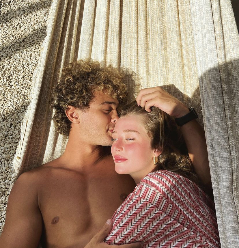 “Depois de 5 anos de amizade, estamos aqui e de uma forma diferente.”, disse o ator. Já a influenciadora foi mais discreta. “Abrigo”, escreveu na legenda da foto em que aparece deitada em uma rede com o namorado.