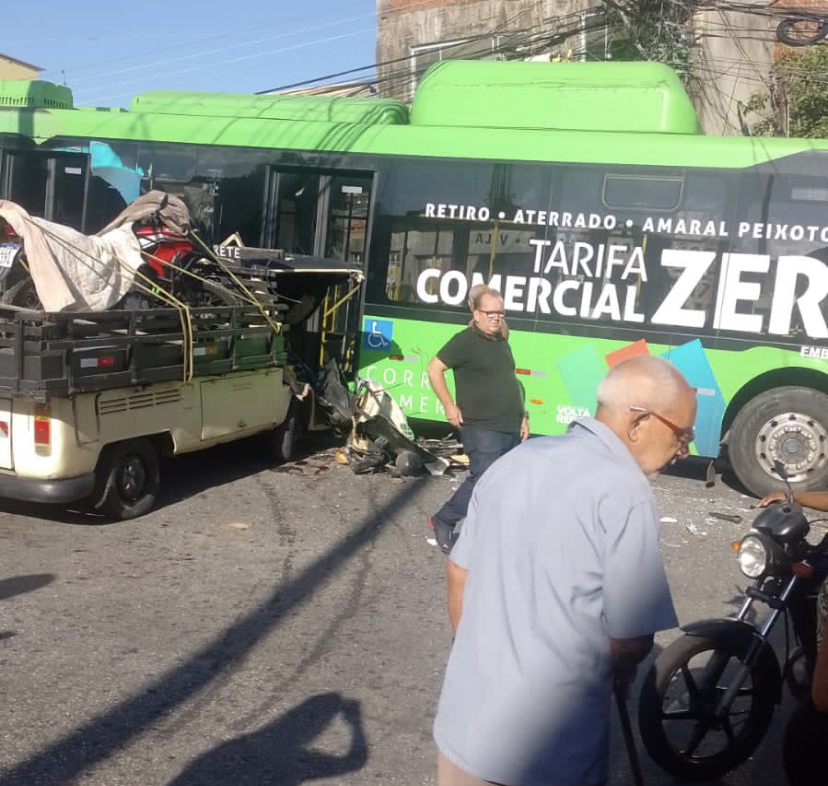 Pai e filho ficaram feridos depois que a kombi em que eles estavam perdeu o freio e atingiu um ônibus em Volta Redonda (RJ). O acidente aconteceu na tarde desta quarta-feira (27), na Rua Angra dos Reis, no bairro Eldorado.