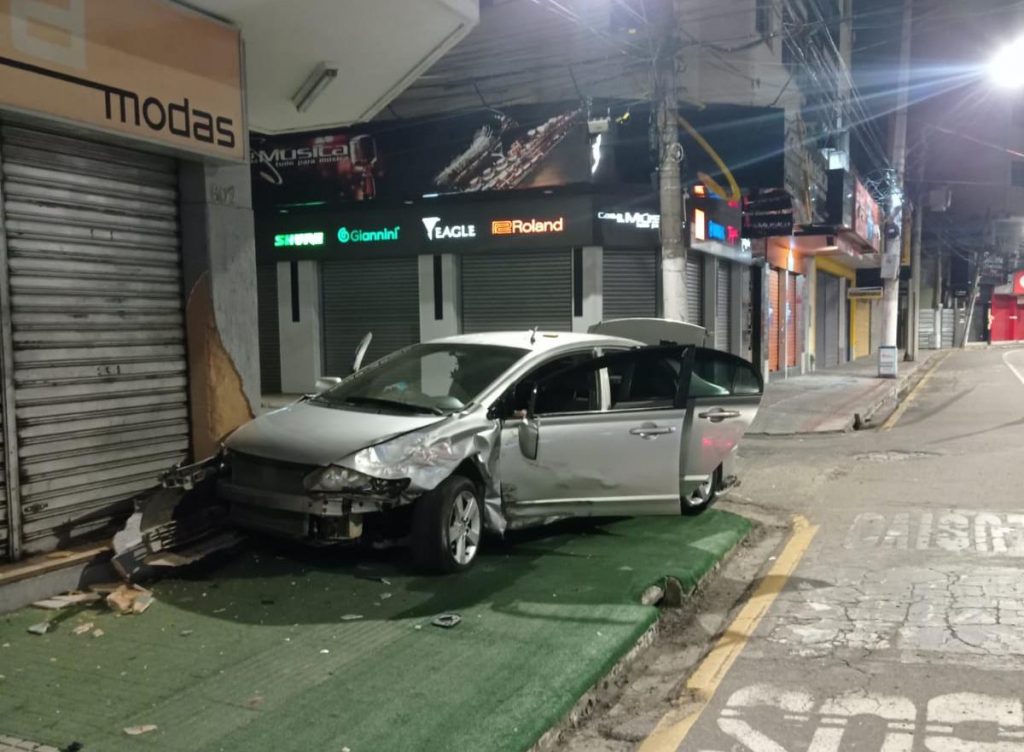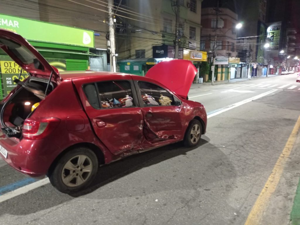 O veículo subiu na calçada e quase invadiu uma loja da avenida. Por sorte, não havia nenhum pedestre no momento do acidente. O dono do Sandero fez ocorrência on-line na site da Polícia Civil