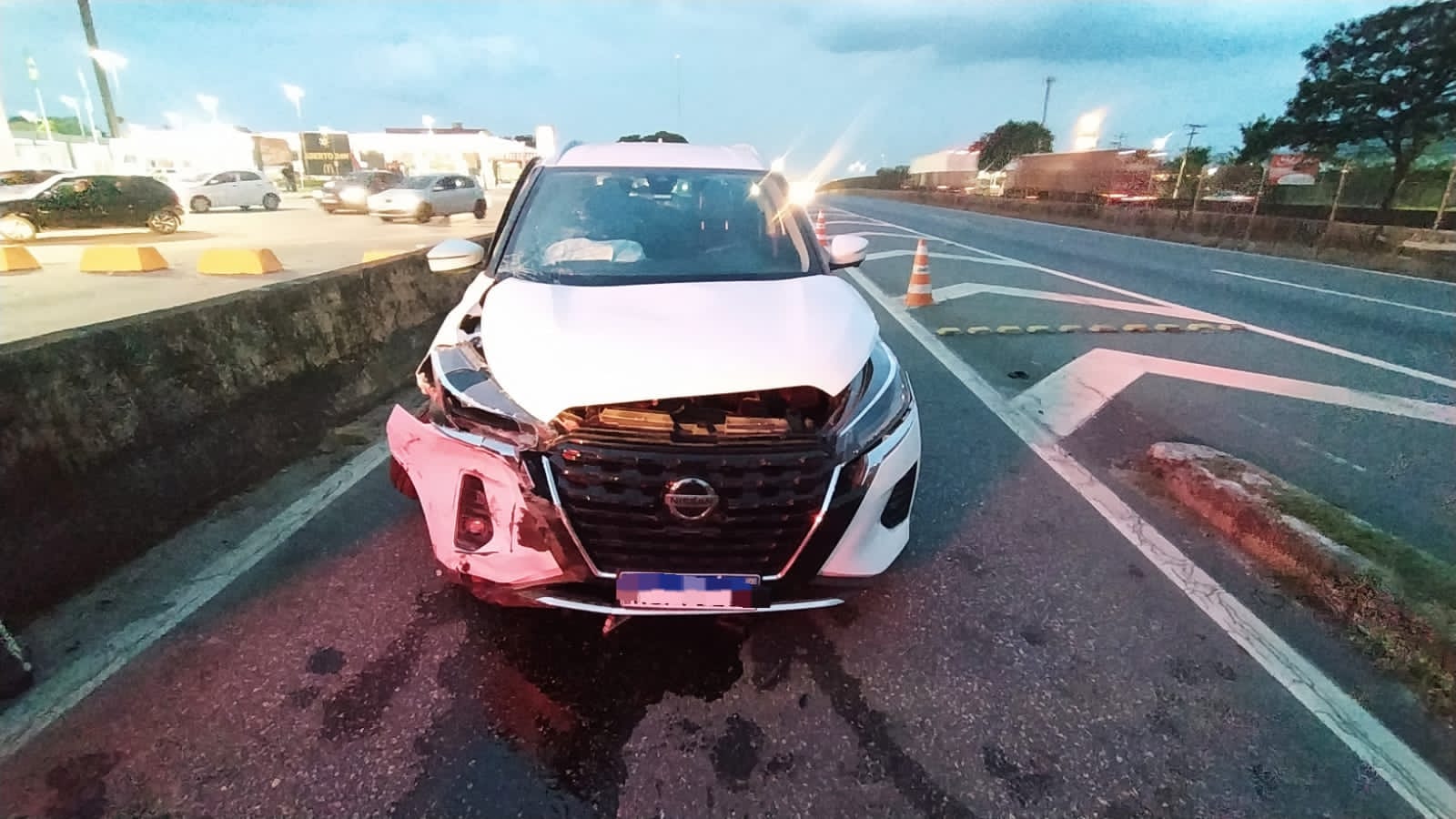 As informações são da Policia Rodoviária Federal. Segundo os agentes, foi uma colisão traseira e o veículo de passeio foi arremessado para mureta central da rodovia.