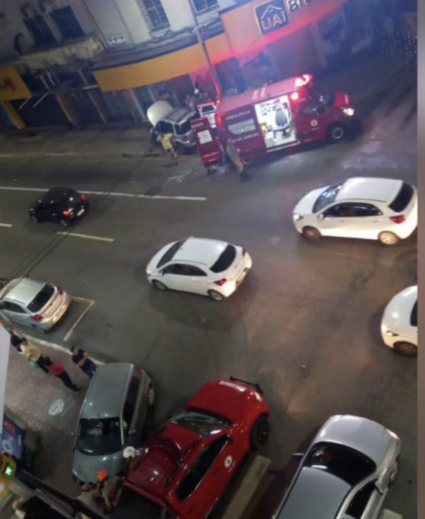 Após a colisão, os dois veículos subiram na calçada – um quase atingiu a loja Uai Brasil e outro a Drogaria Moderna. O trânsito ficou interrompido até a remoção dos veículos.