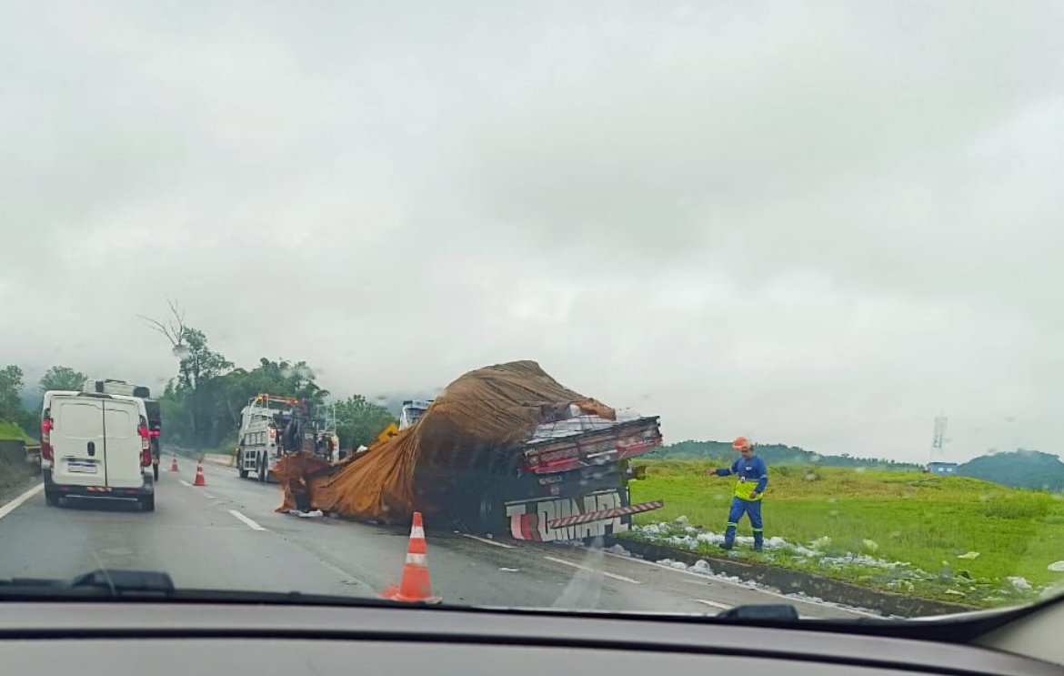 Segundo a CCR, concessionária que administra a rodovia, por volta de 9h30, o trânsito estava fluindo apenas pela faixa da esquerda.