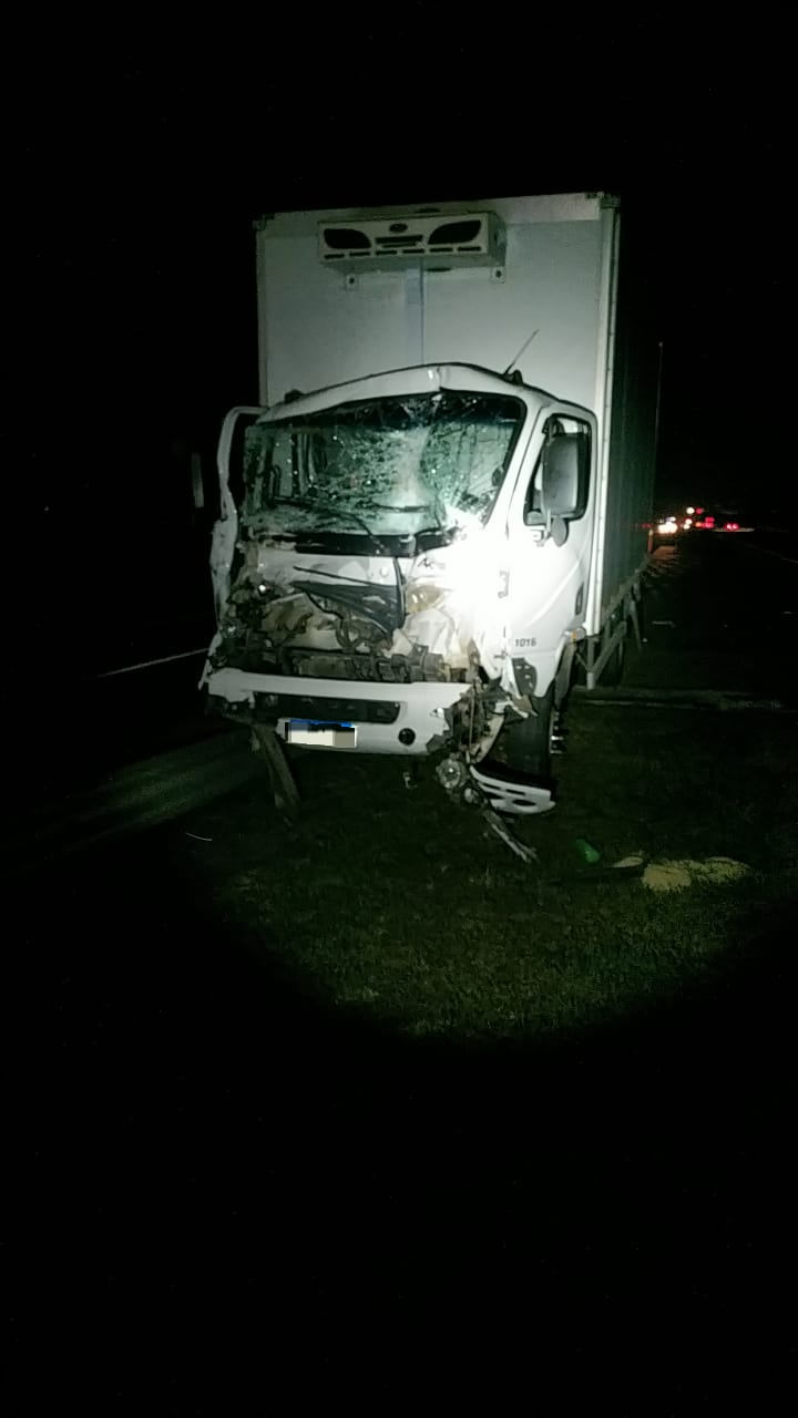 Segundo os agentes, com impacto, um dos veículos subiu no canteiro central da rodovia e outro ficou no acostamento. Ninguém se feriu. Em conversa aos policiais, o motorista do caminhão de trás não lembra o motivo do acidente, indicando que dormiu ao volante.