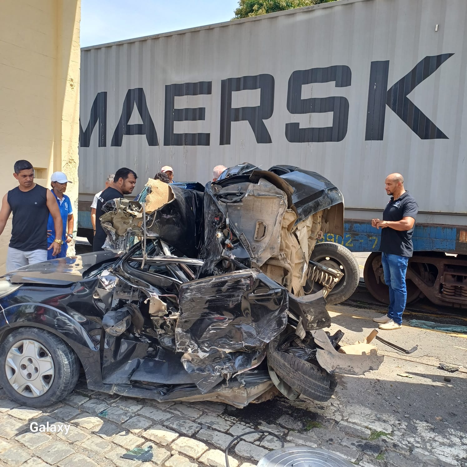 Um motorista ficou preso nas ferragens após o carro colidir com trem em Barra Mansa. O acidente ocorreu na passagem de nível do Parque da Cidade, na Avenida Prefeito João Chiesse Filho, no bairro Roberto Silveira. A lataria do carro precisou ser cortada para a retirada da vítima.