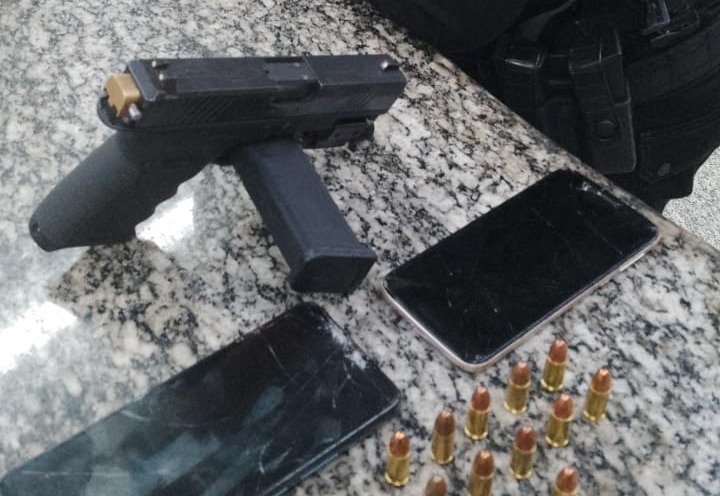 Após alguns minutos, o carro se chocou no meio-fio e os agentes conseguiram interceptá-los na Rua Professora Júlia Graciane Marassi. Durante a revista, foi encontrada uma pistola 9 mm com munições. Havia um mandado de prisão contra o passageiro por homicídio.