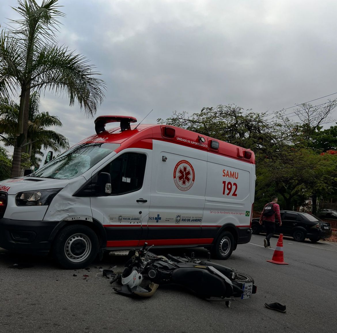Ambulância do Samu e uma moto colidem em Volta Redonda