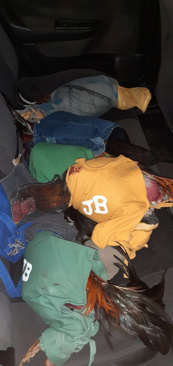 Segundo os agentes, oito animais estavam no interior do veículo, em mochilas. Outros três no porta-mala e com “claros sinais de maus-tratos, apresentando perfurações e cortes em todo corpo, acondicionados em um saco de estopa fechado e que provavelmente haviam participado de luta nessa ‘rinha’”.