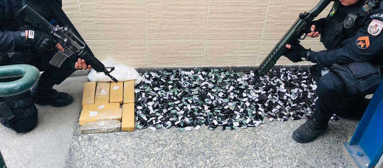 Foram apreendidos ainda 1.026 pinos de cocaína, um saco com três quilos da mesma droga, além de oito quilos de maconha, e sete munições de pistola.