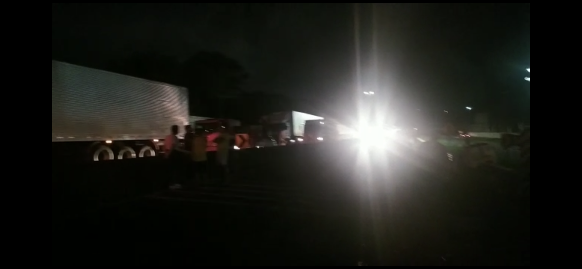 A Polícia Rodoviária Federal informou que há aglomeração e disse que os manifestantes estão deixando passar alguns veículos, não especificando quais são. Os agentes acompanham de perto a manifestação.