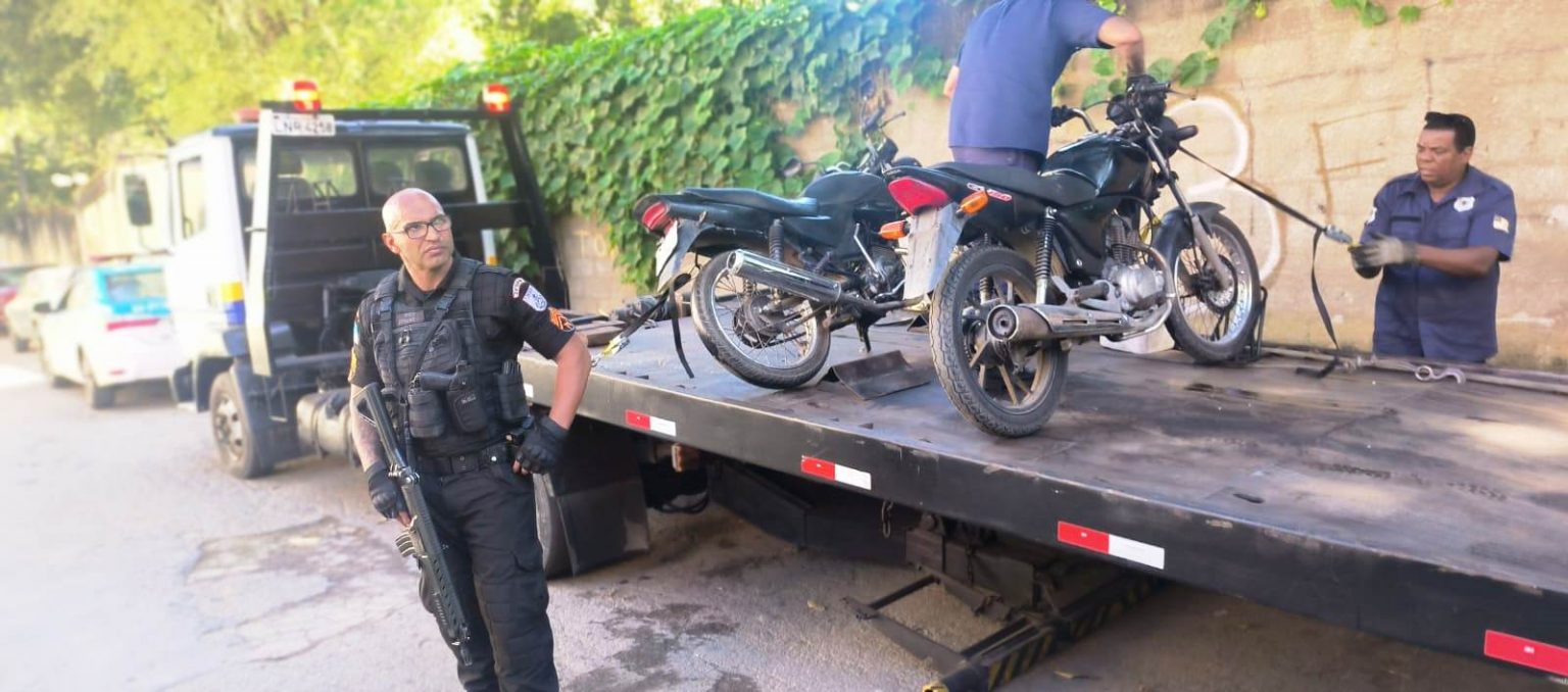 Segundo a PM, a moto sem placa era uma Honda CG Titan com registro de furto. A outra motocicleta é uma Yamaha YBR-125. As duas foram apreendidas e levadas para o pátio da Guarda Municipal e o registro foi feito na delegacia de Volta Redonda (93º DP).