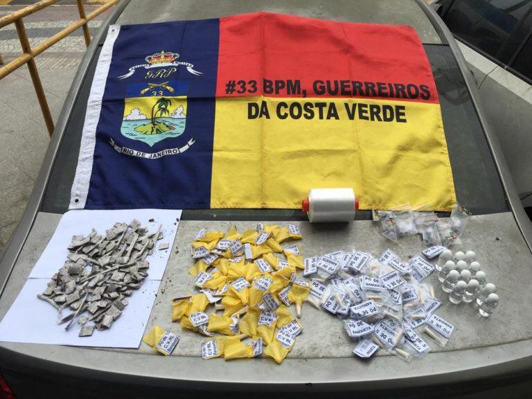 A Polícia Militar apreendeu drogas após uma troca de tiros com suspeitos de tráfico de drogas no domingo (6) em Angra dos Reis (RJ).