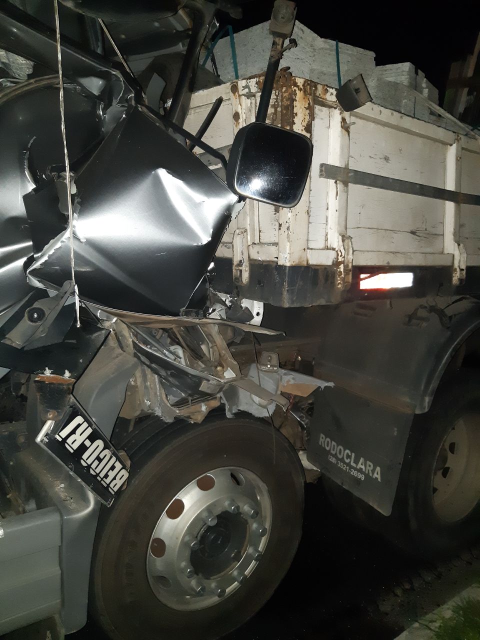 No local, os agentes da PRF apurou que um caminhão M.Benz/ATEGO 2425 havia colidido na traseira de uma carreta, numa subida, na faixa da direita, tendo a cabine do caminhão ficado totalmente destruída e o condutor de 35 anos ficado preso nas ferragens. O condutor da carreta ficou ileso.
