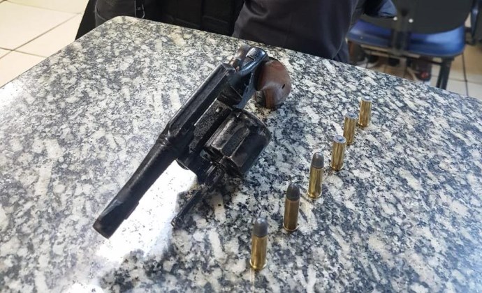 Os policiais militares chegaram até o local após uma denúncia. O flagrante ocorreu na Rua 21, onde o suspeito se encontrava dentro de um Ford Fusion. A arma (revólver calibre 32) estava sob o banco do motorista.