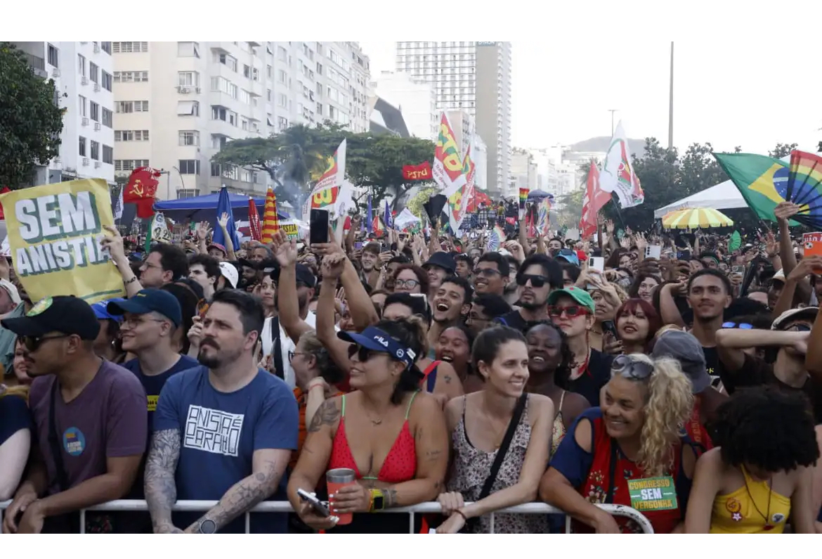 Milhares de pessoas ocuparam neste domingo (21) a Praia de Copacabana, na zona sul do Rio de Janeiro, para protestar contra a PEC da Blindagem e a anistia a condenados por golpe de Estado pelo Supremo Tribunal Federal (STF), entre eles o ex-presidente Jair Bolsonaro, ex-ministros e aliados.