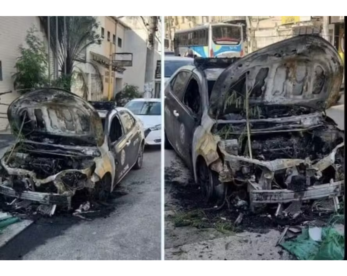 Bandidos incendeiam viatura da Polícia Civil estacionada em delegacia