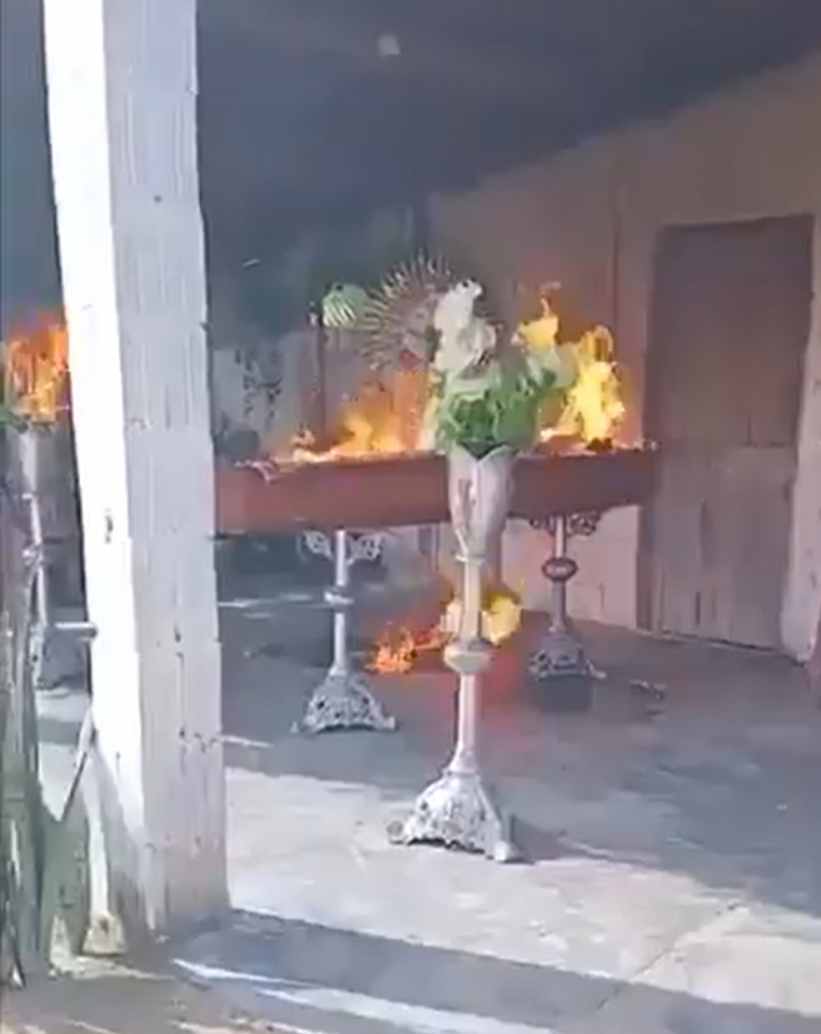 Um vídeo, registrado por parentes e amigos da vítima, mostra o caixão em chamas durante o velório.