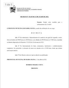 A assessoria do prefeito Rodrigo Drable divulgou na noite desta segunda-feira (12) um novo decreto em relação ao comércio em geral, bares, restaurantes e lanchonetes. Pelo documento, o comércio geral poderá funcionar das 9 às 20 horas de segunda a sexta-feira.
