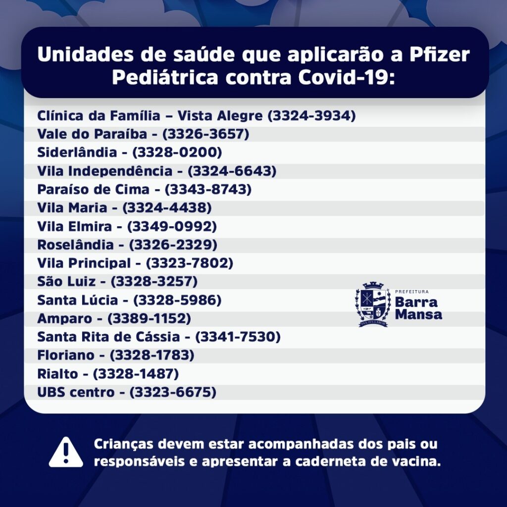 Barra Mansa anunciou na noite desta sexta-feira (14) que começa a vacinar, com Pfizer, crianças de 5 a 11 anos em locais descentralizados da cidade (confira a lista abaixo).