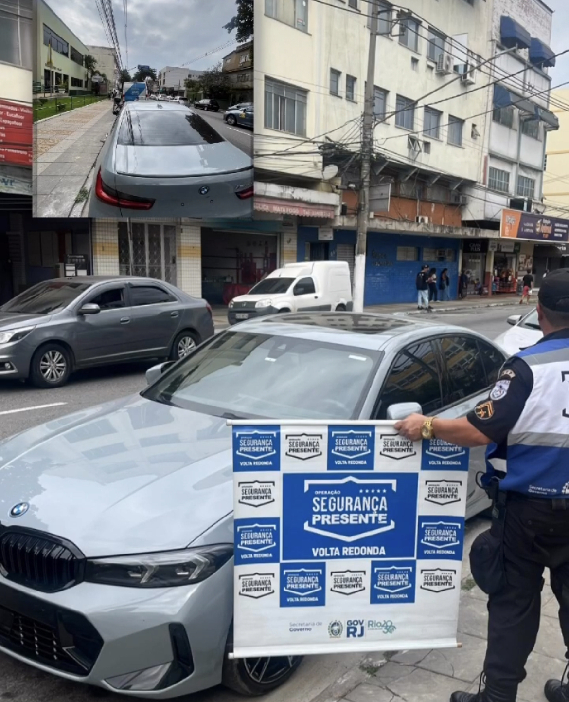 Eles perceberam que veículo também não possuía a placa traseira. Questionado, o dono do veículo afirmou que o carro era novo e Volta Redonda não tem local apropriado para instalar placas de uma BMW. Elas precisariam ser instaladas no Rio ou São Paulo. As placas estavam no porta mala do veículo.