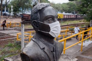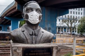 Depois de Getúlio Vargas e de Raulino de Oliveira, em Volta Redonda, agora, é a vez de um busto de Barra Mansa aderir a nova moda: o uso da máscara.
