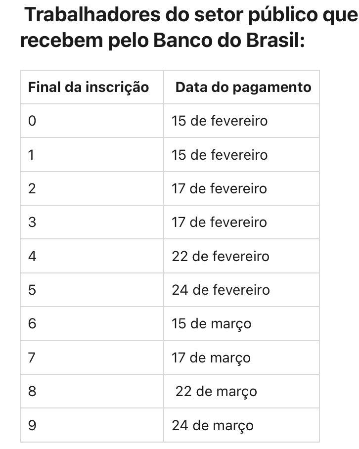 Também hoje, o Banco do Brasil libera o abono salarial para os trabalhadores do setor público com inscrição de final 7. O pagamento para essa categoria começou a ser feito em 15 de fevereiro e segue até 24 de março, com base no dígito final da inscrição do servidor.