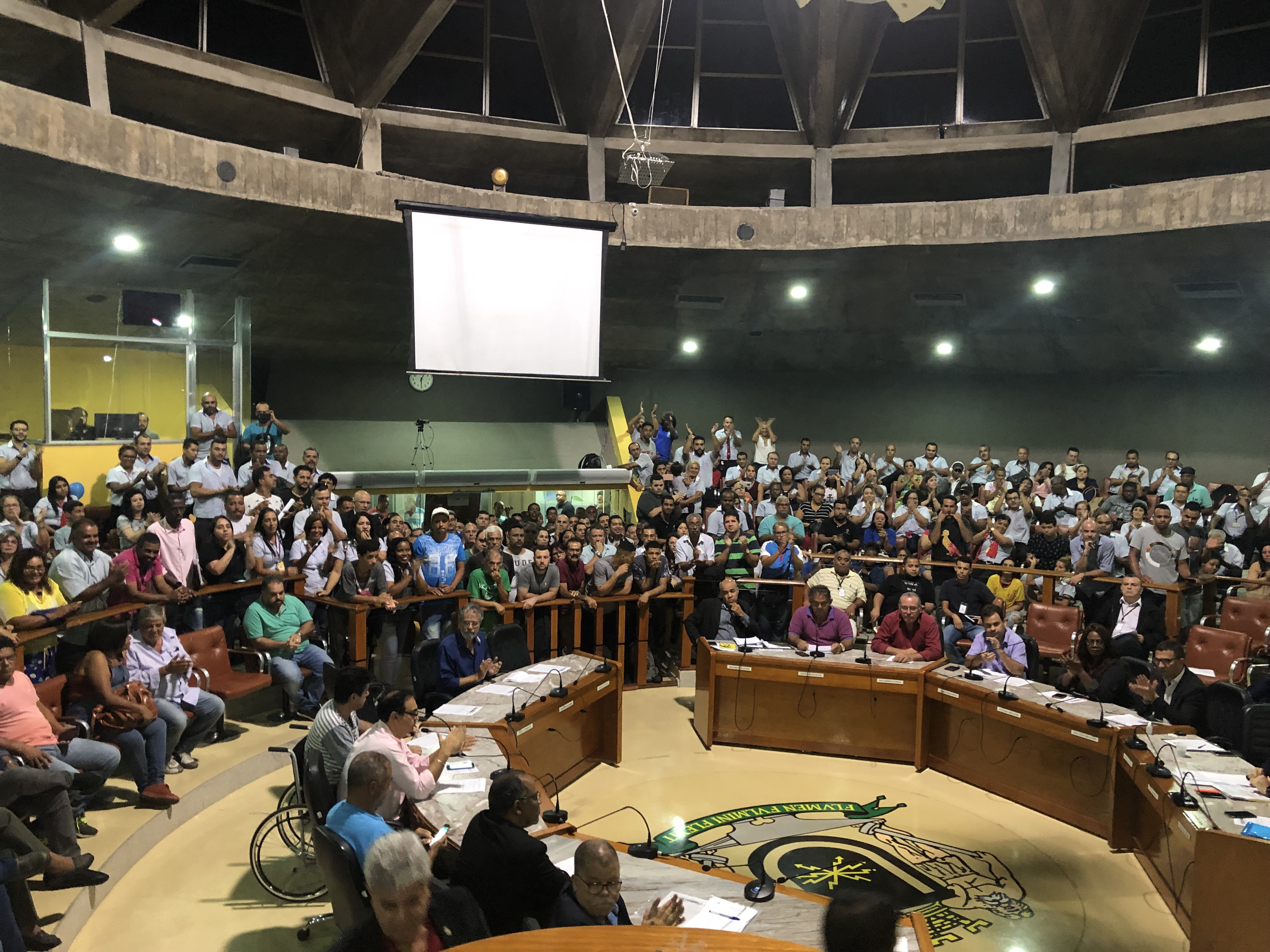 Com o plenário cheio de motoristas e cobradores da viação Sul Fluminense, a Câmara de Volta Redonda aprovou um requerimento pedindo que o prefeito Samuca Silva suspenda, por 90 dias, seu decreto de caducidade da concessão da Sul Fluminense.