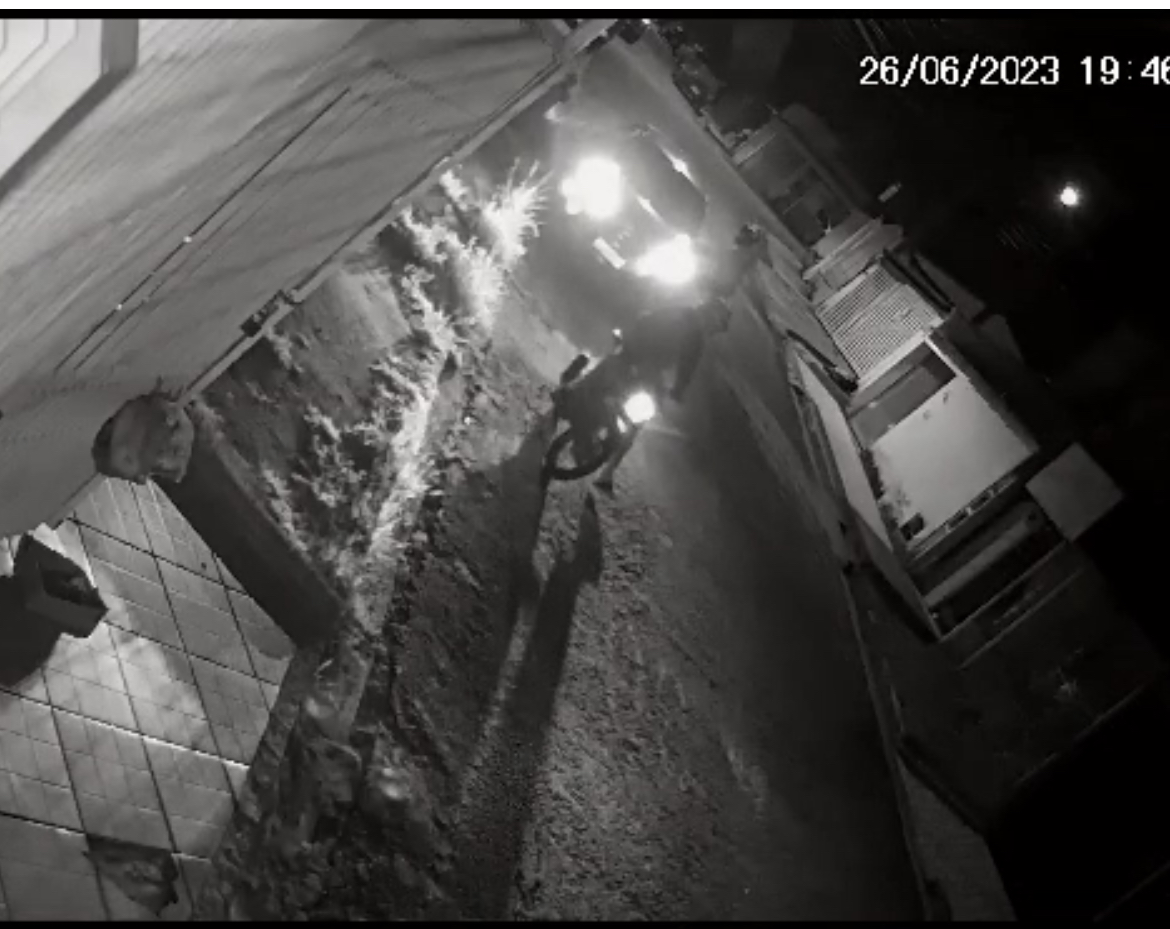 Uma tentativa de assalto a um carro foi flagrado por câmeras de segurança em Volta Redonda. O caso ocorreu na noite desta segunda-feira (26) na Rua 22, no bairro Vila Rica-Tiradentes. Dois homens numa moto fecharam o automóvel e o garupa desceu do veículo armado para a abordagem.