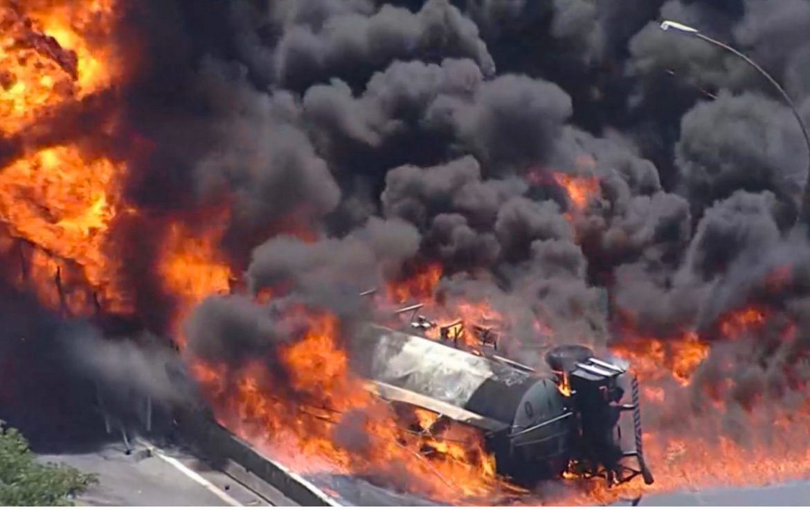 Caminhão tanque pega fogo e interdita a Via Dutra