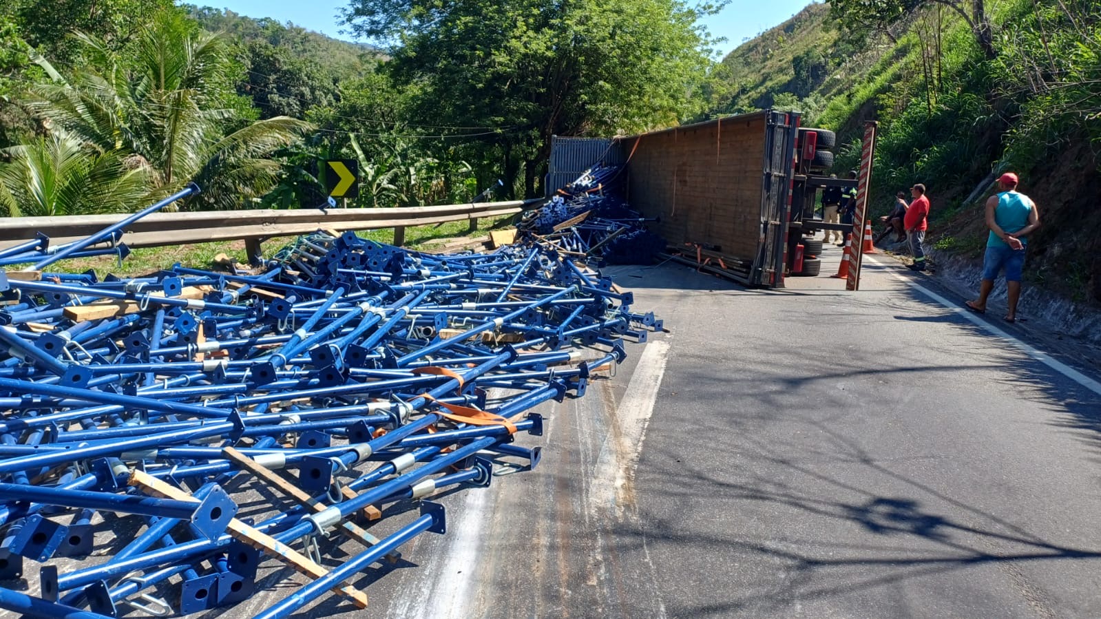 Um caminhão que transportava estruturas metálicas tombou na manhã desta terça-feira (12) no fim da descida da Serra das Araras, em Paracambi. O acidente aconteceu na altura do km 226 da Rodovia Presidente Dutra.