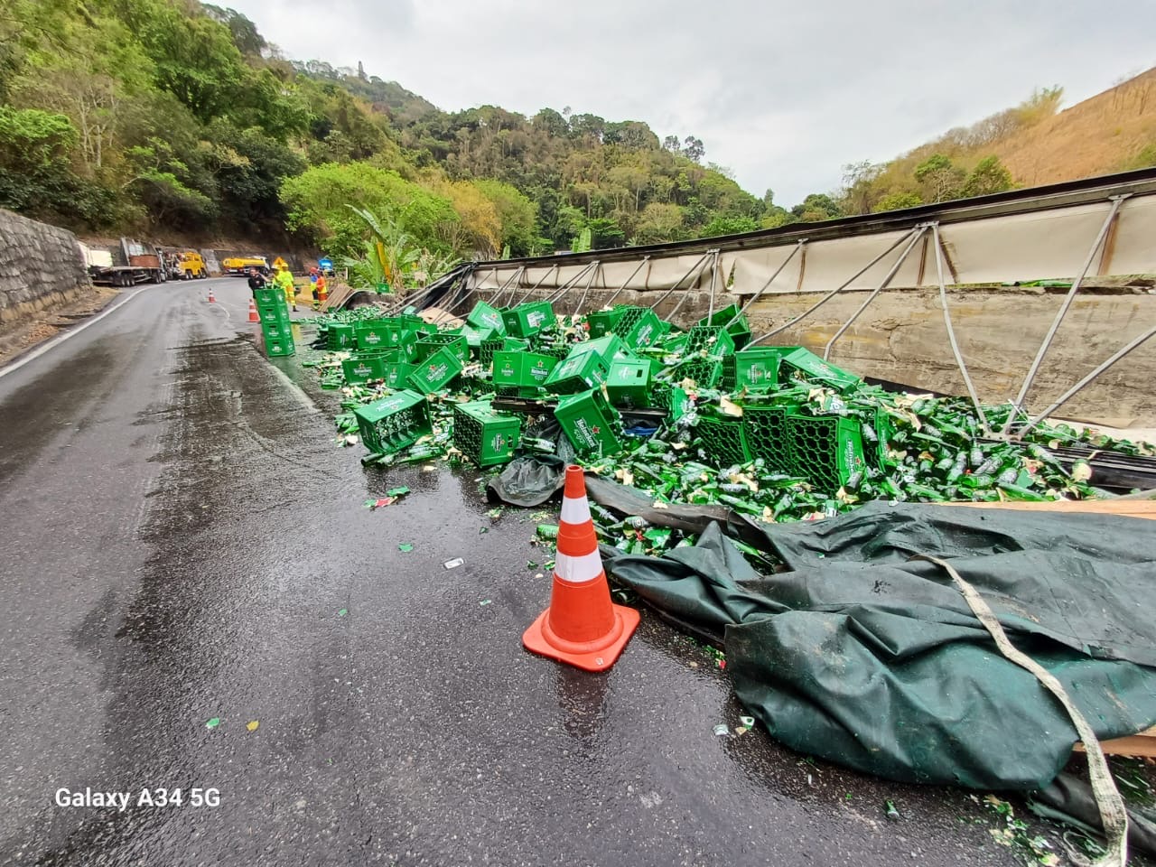Carreta com engradados de cerveja tomba e interdita Serra das Araras