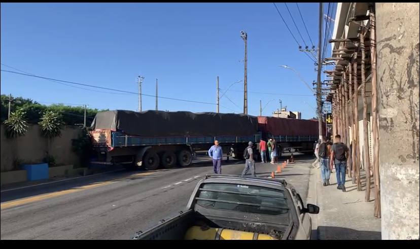 Uma carreta bitrem tentou realizar uma manobra na Avenida Getúlio Vargas, em Volta Redonda, mas não teve sucesso. O fato ocorreu na tarde desta quinta-feira (28) e acabou causando um grande engarrafamento na via, que liga os bairros Jardim Amália e Vila Santa Cecília.