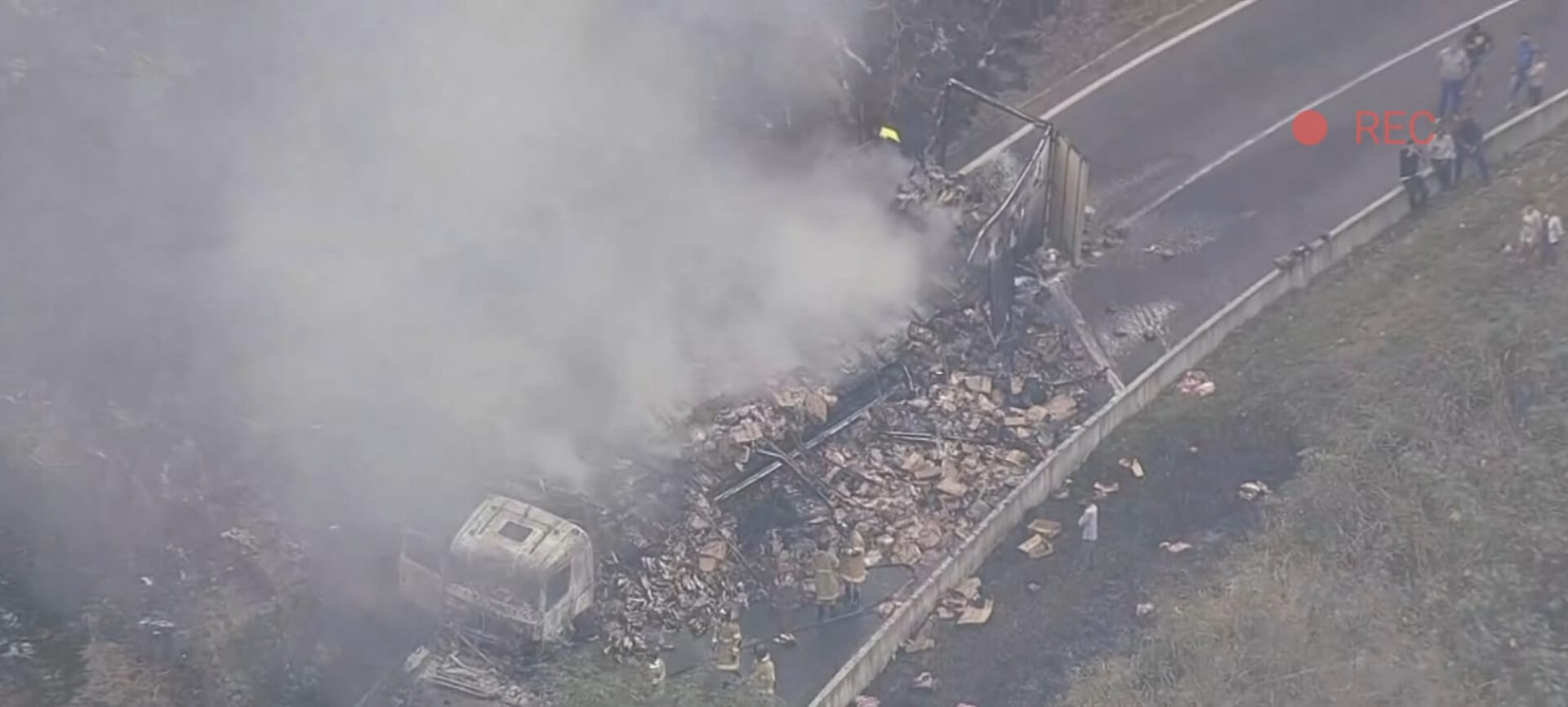 Carreta pega fogo e interdita descida da Serra das Araras, em Piraí