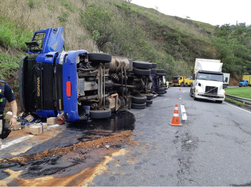 A pista ficou parcialmente interditada com trânsito fluindo pela faixa esquerda, gerando lentidão no trânsito. Equipe PRF permanece no local para evitar saque da carga.