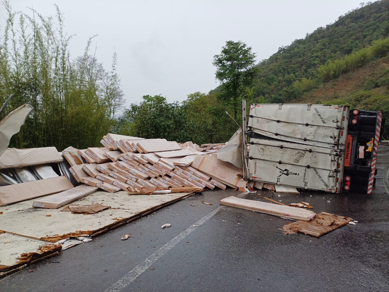 Ainda segundo a concessionária, a carreta já foi destombada. Equipes estão no local realizando a limpeza da pista.