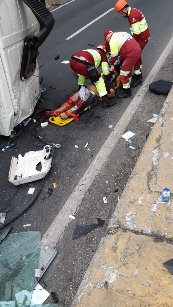 O motorista da carreta se feriu gravemente.