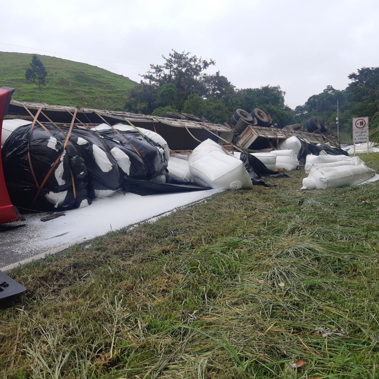 Uma carreta tombou na manhã desta sábado (15) na BR-393, na curva do Aterrado, em Barra do Piraí. O veículo, que é bitrem, teria perdido o controle na curva. As informações são da Polícia Rodoviária Federal.