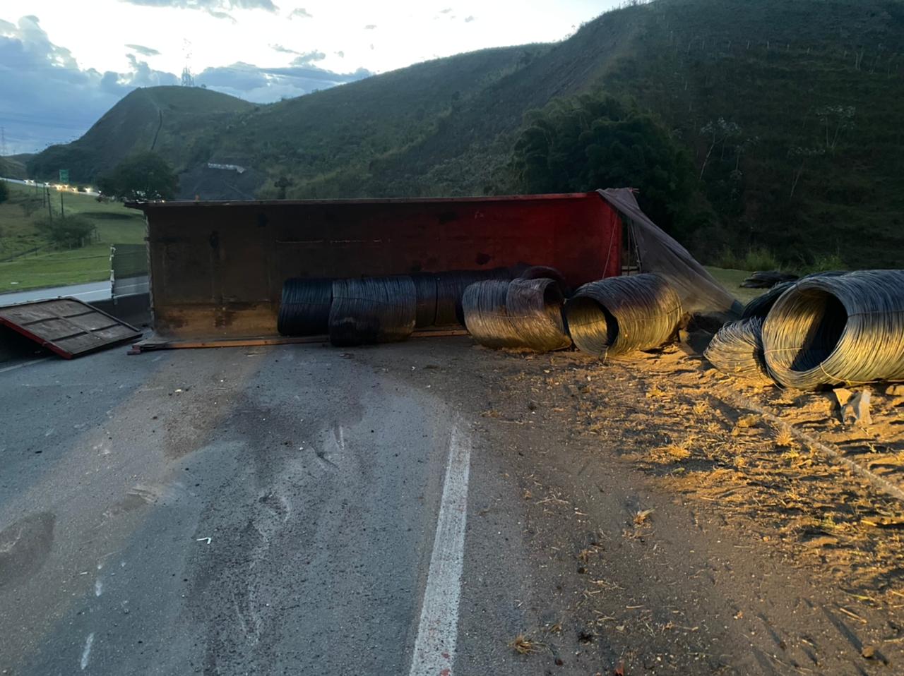 Uma carreta, carregada com bobinas de vergalhão de aço, tombou no fim da tarde deste domingo no km 262 da Dutra, na pista sentido São Paulo, em Barra Mansa. As informações são são da Polícia Rodoviária Federal.
