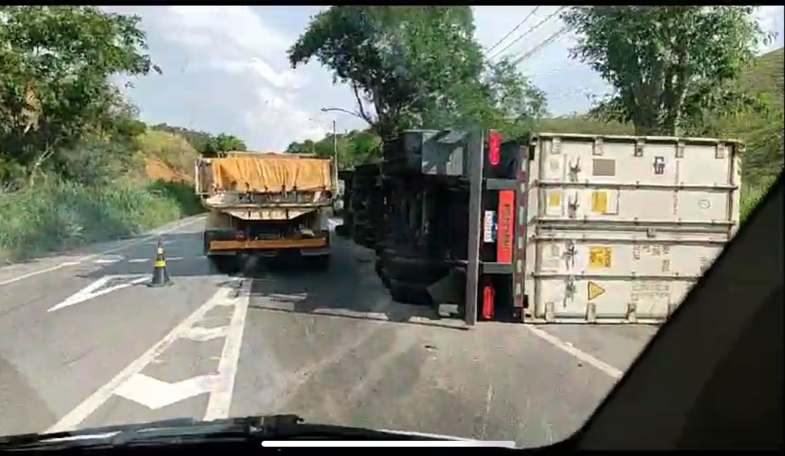 Carreta tomba na Rodovia dos Metalúrgicos em Volta Redonda