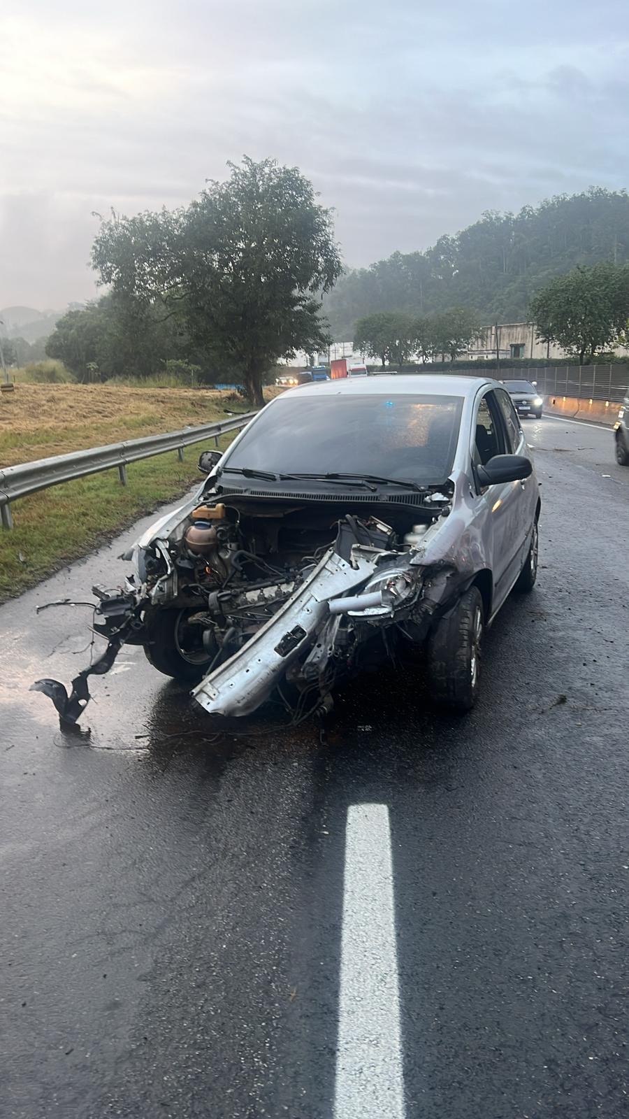 Carro bate em canteiro e deixa tráfego lento na Dutra em Barra Mansa