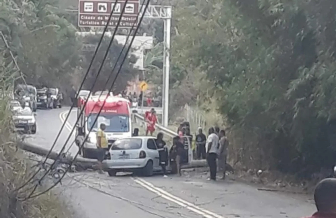 Carro bate em poste e deixa três pessoas feridas em Pinheiral