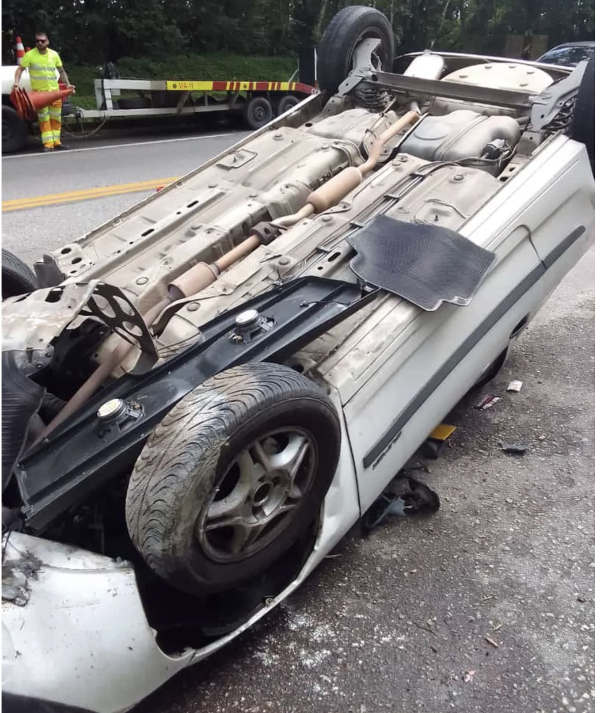 Um carro capotou e deixou duas pessoas feridas na manhã deste sábado (12) na Rodovia Rio-Santos, em Angra dos Reis (RJ). O acidente aconteceu na altura do bairro Frade, na pista sentido São Paulo.