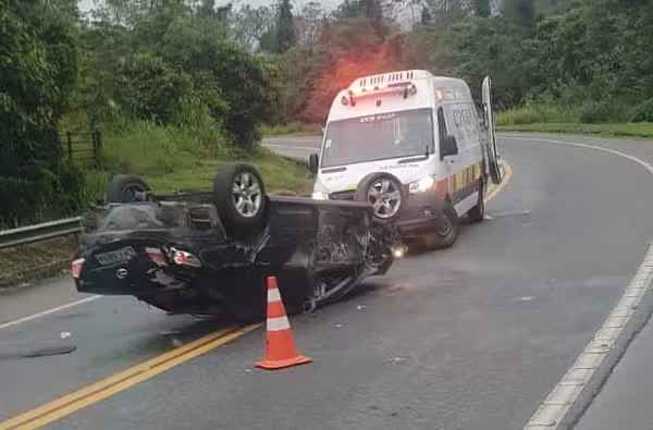 Um carro capotou e deixou uma pessoa ferida no início da manhã desta terça-feira (23) na BR-101 (Rodovia Rio-Santos), em Angra dos Reis (RJ). O acidente aconteceu na pista sentido São Paulo, por volta de 6h.