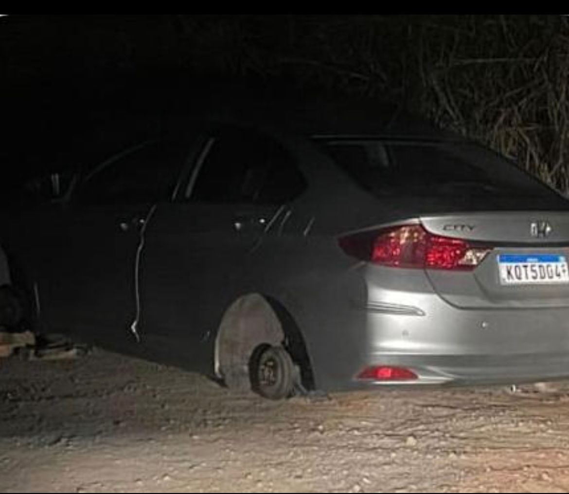 O veículo das “empadinhas fresquinha” – um Honda City – que foi roubado na última sexta-feira (14) foi recuperado na noite desta sexta-feira (16). O carro foi encontrado no bairro Boa Vista sem as quatro rodas numa rua deserta. Os policiais militares receberam a denúncia dando conta que havia um automóvel abandonado. Chegando, os agentes confirmaram o teor da informação.
