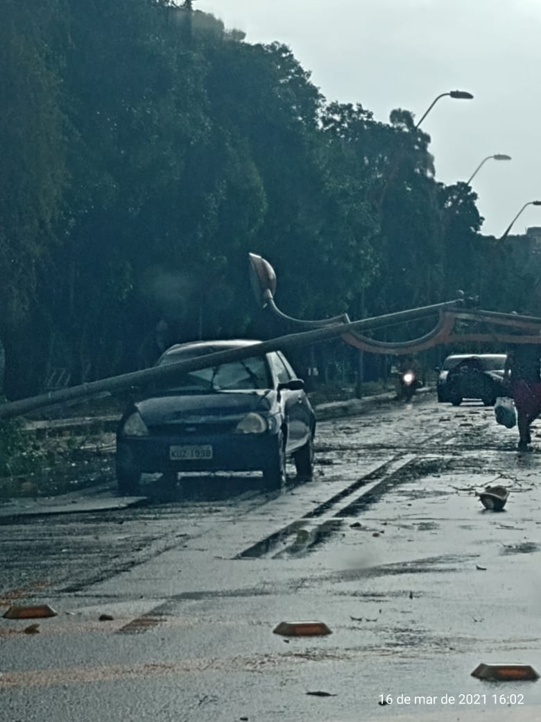 Um carro foi atingido por um poste que desabou na tarde desta terça-feira (16) em Volta Redonda. O caso ocorreu na avenida Beira-Rio, na altura da Vila Mury. Segundo informações de testemunhas, ninguém ficou ferido.
