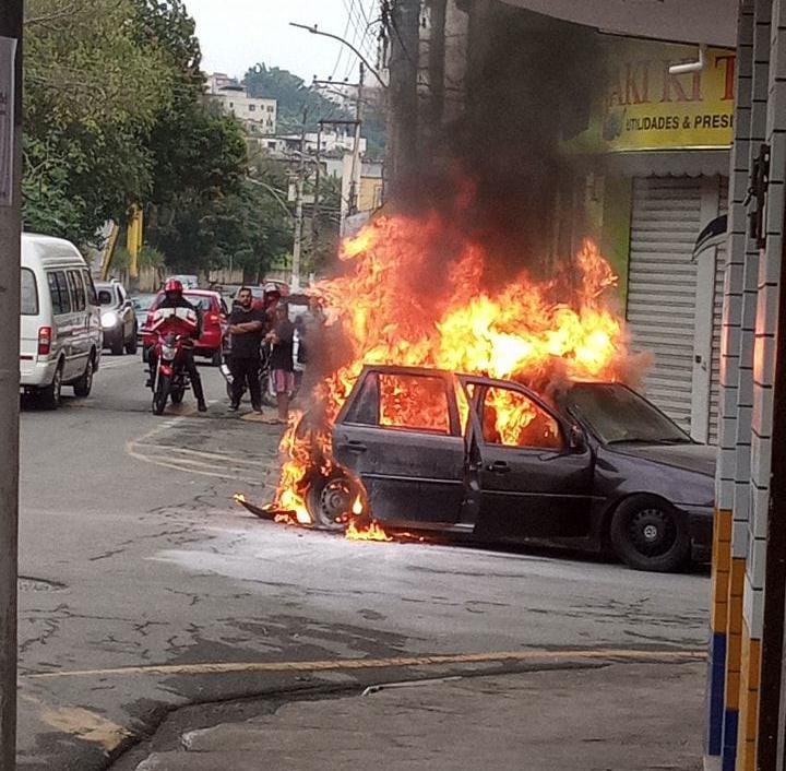 Um carro (Gol vinho) pegou fogo na tarde deste domingo (9) em Volta Redonda. O caso ocorreu na esquina da Avenida Argentina com a Rua Nicarágua, no bairro Vila Americana. O fogo começou na traseira do veículo e, rapidamente, foi consumindo o veículo.