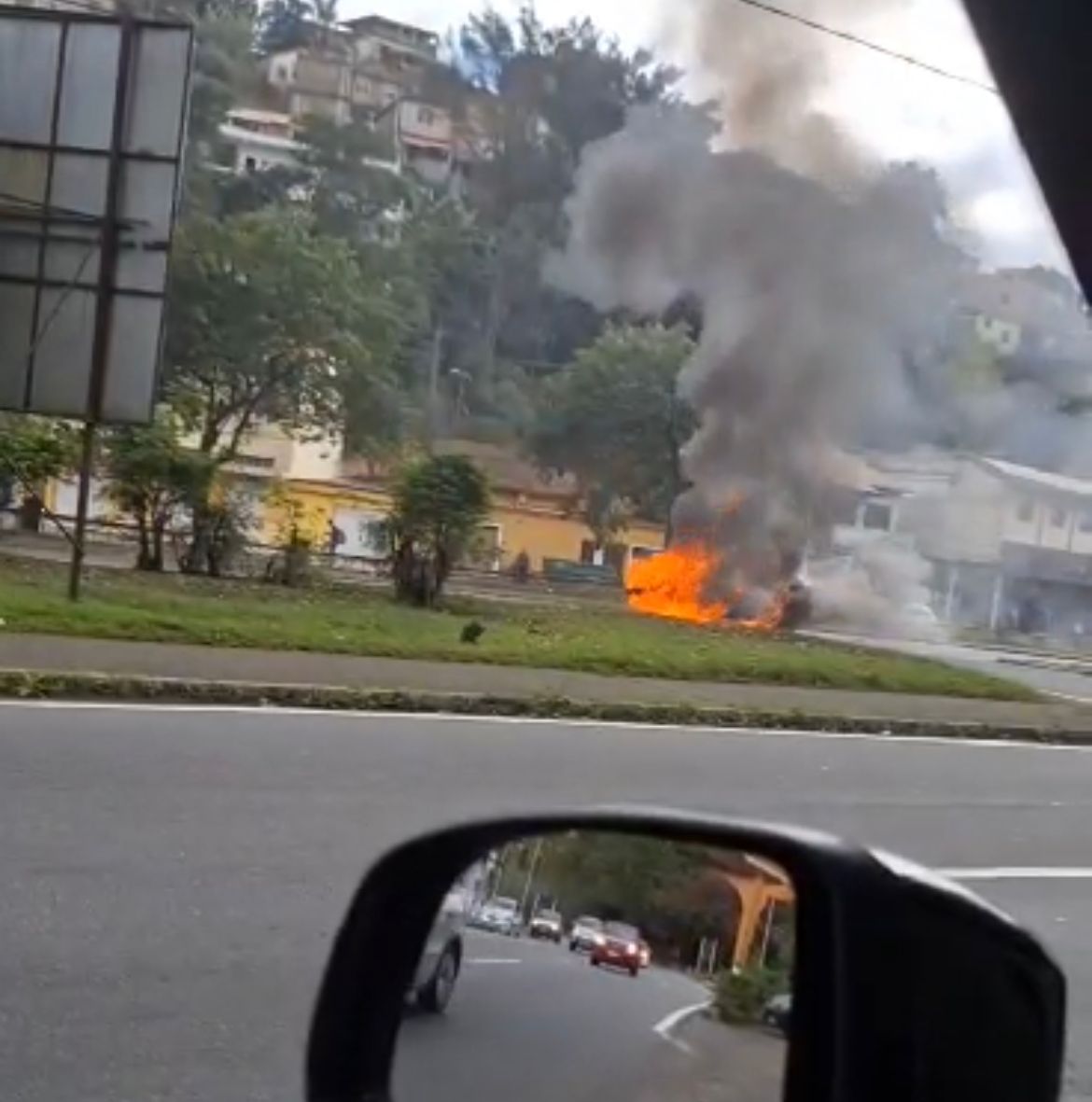 Carro pega fogo em Volta Redonda