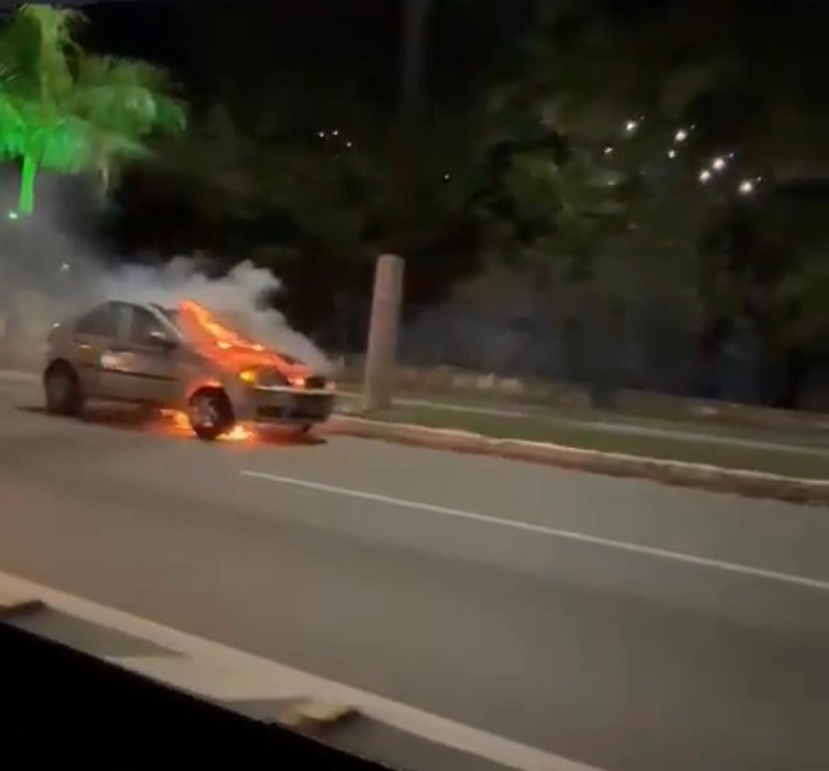 Os ocupantes conseguiram sair do automóvel antes que a chama tomasse conta do veículo. Ninguém ficou ferido. Os bombeiros foram acionados para combater o fogo.
