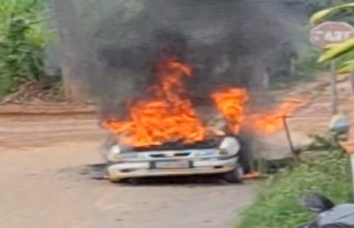 Carro pega fogo em Volta Redonda