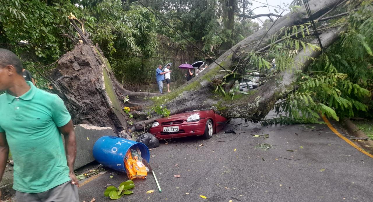 Árvores e galhos caíram em cima de carros e casa em Volta Redonda. O caso ocorreu, por exemplo, na Rua 547 no bairro Jardim Paraíba. Dois veículos ficaram destruídos.